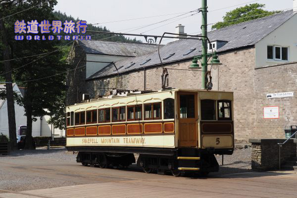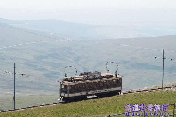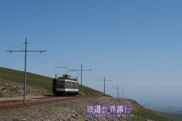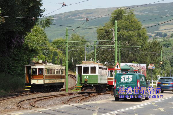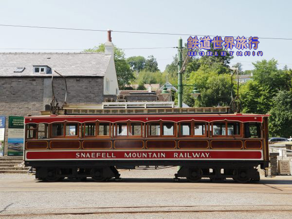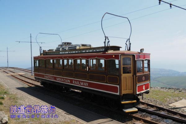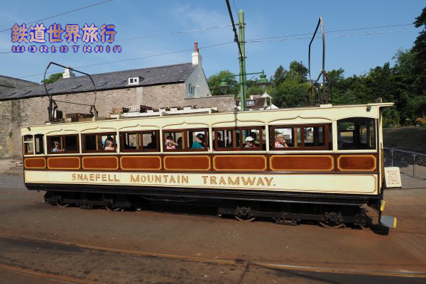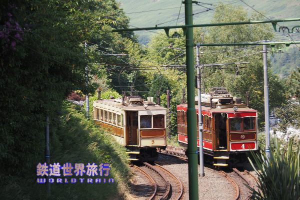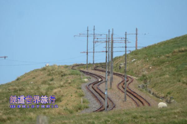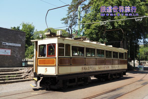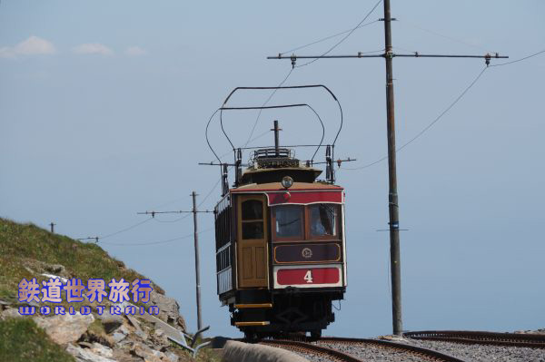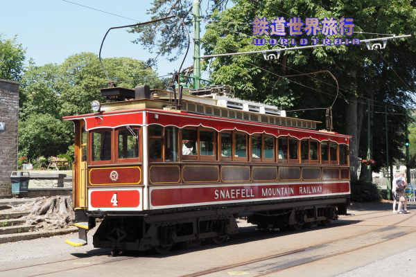 | この時はスネッフェル登山鉄道のNo.4とマン島電気鉄道のNo.5の並走。 スネッフェル登山は軌間1,067mm、マン島電気鉄道は914mmで軌間が異なる。 |