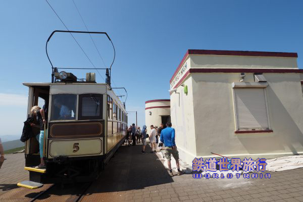 | ラクシー発の出発が遅れた様で登って行くNo.5と下りて来たNo.4が並んだ。No.5は車体更新されていて並ぶと違いがわかりやすい。 |