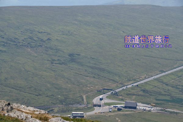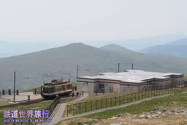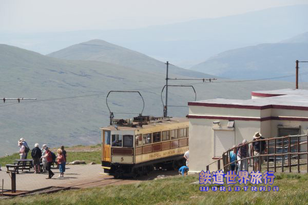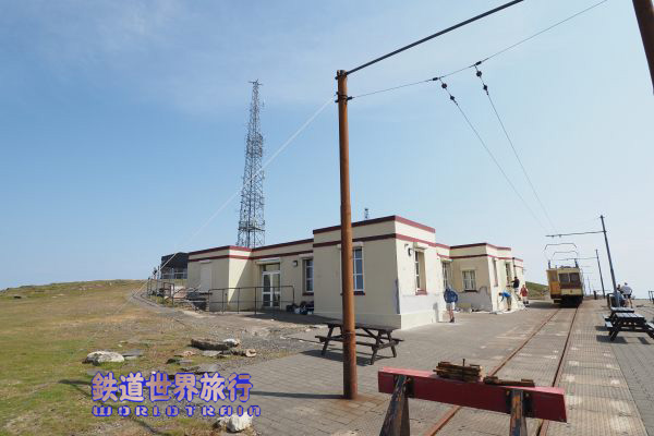 | 終点のサミット(頂上)駅、マン島の最も高いスネッフェル山の頂上にあり建物内にカフェとお土産物屋さんがある。 |