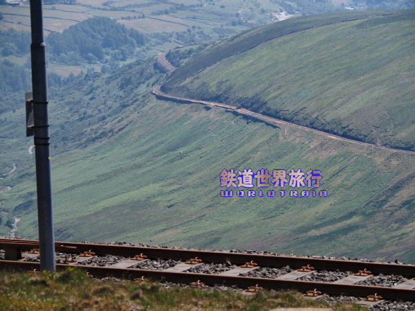 | 登って来た折返しの列車を撮影。 高低差が大きいので山頂付近を撮影出来る区間は少ない。 |
