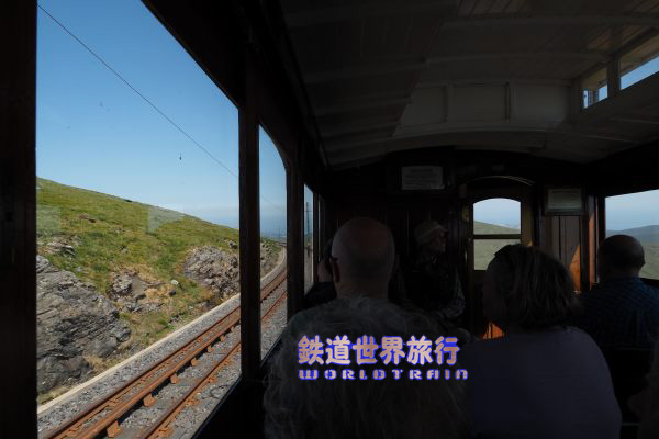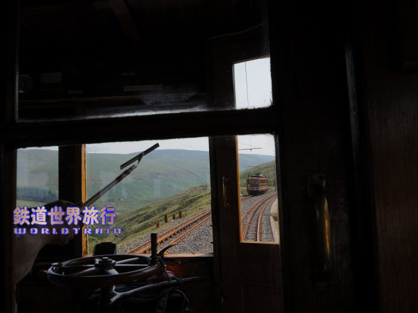 | 下りで2度目のすれ違いはThe Great Laxey Wheel付近となり、水車を狙っていると突然被られてしまいがちな様。 |