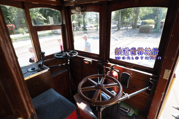 | 乗降する際に運転室を見る事ができる。 大きなブレーキハンドルが2つあり、マスコンが左サイドにある。 |
