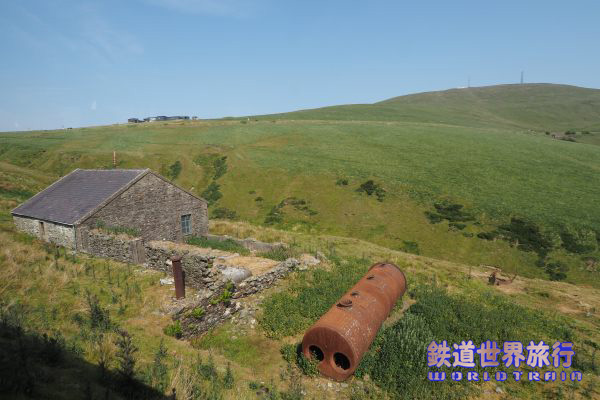 | 線路の周辺に建物は少なく、ボイラー状のものが置かれた石造りの建物が気になった。 |