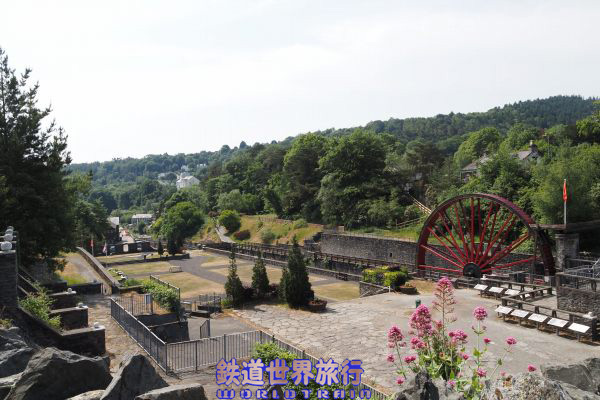 | 水車は川の流れを動力源に坑内の排水を行う為に建設され1854年に完成した。 |
