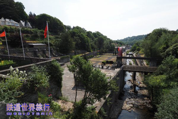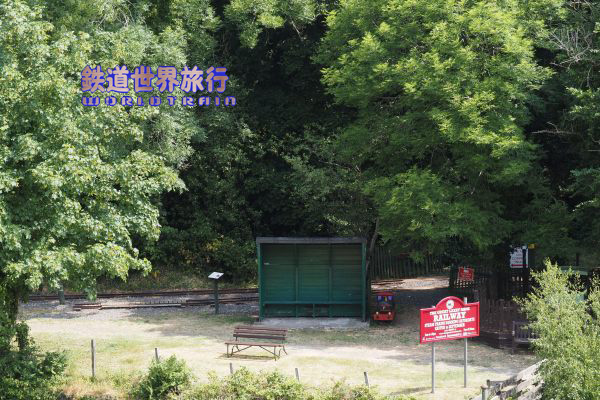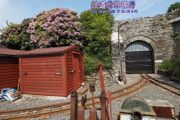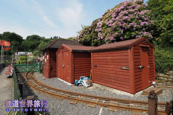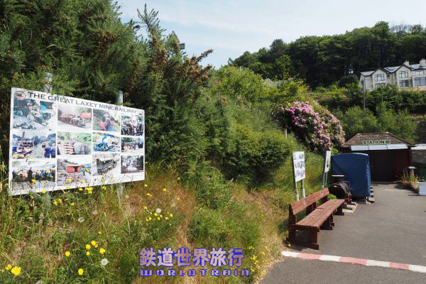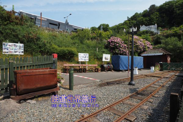 | The Great Laxey Wheelへ向かう途中の道の下方に線路と小駅が見えた。 こちらはThe Great Laxey Mine Railwayという鉄道のMines Yard駅。 |