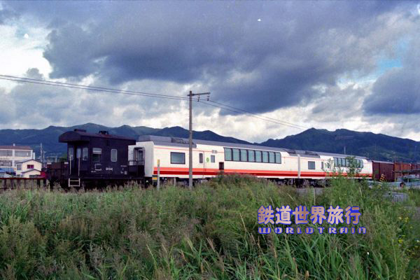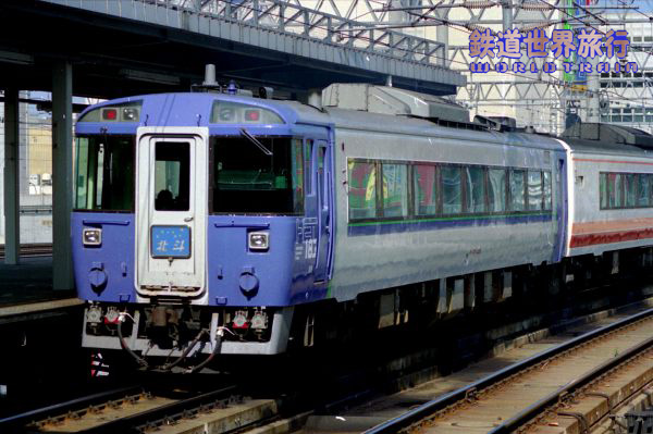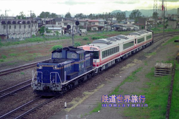 その後、キハ281系によるスーパ北斗運転開始に合わせ、特急北斗に使われるキハ183系もそれに準じたHETカラーに塗色変更される様になった。1993年8月撮影 |