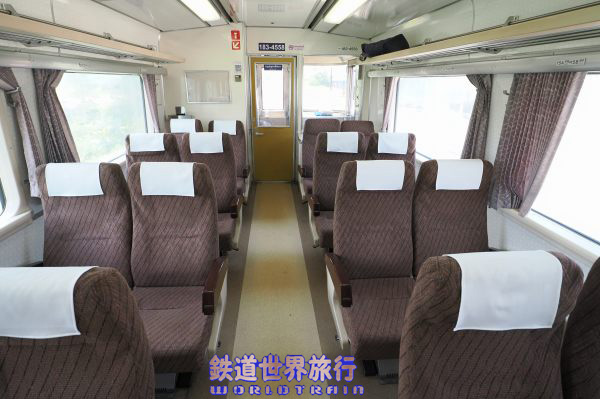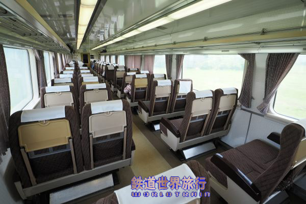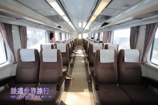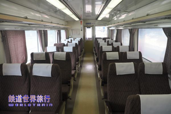 3両目キハ183-4558の車内、回転リクライニングシート2+2配列でJR北海道を引退した時から、ほとんど変わっていない。 |