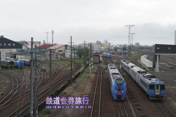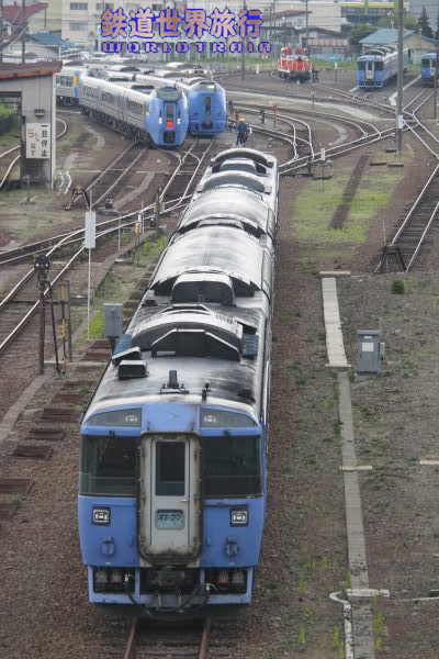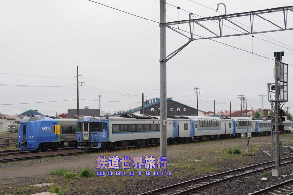 隣の線路には留置されていたキハ183があり、キハ183の3台並びが見られた。 |