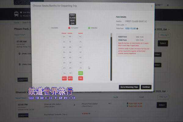 カンボジア王立鉄道Royal Railway Cambodiaの情報発信はFacebookで行われているが、チケット予約販売のホームページがあった。 |