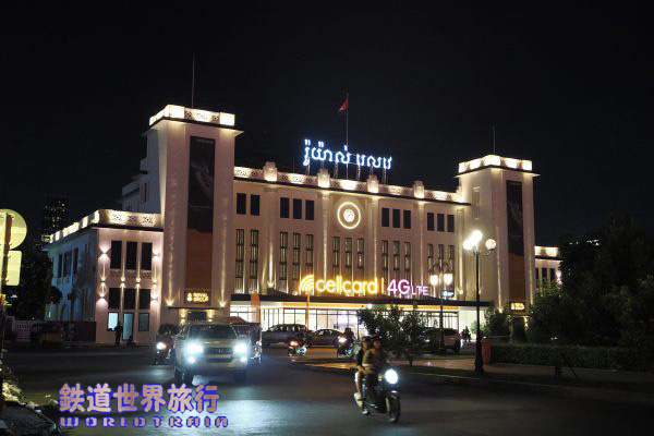 夜はライトアップされていたプノンペン駅の駅舎。 |