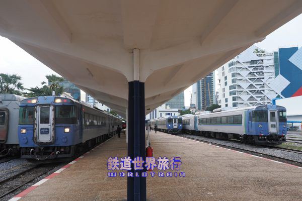 カンボジアに来たキハ183系11両全てが駅構内に居た。 |