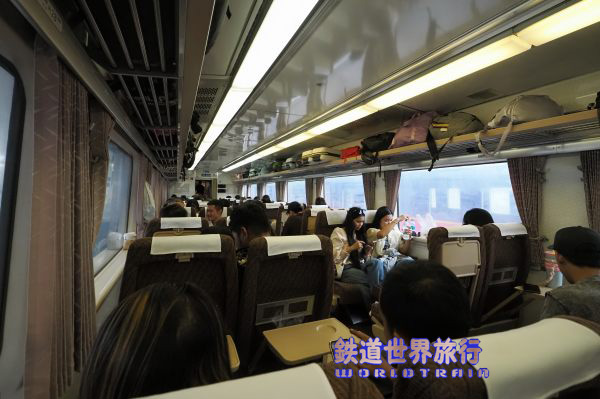 乗車すると2等は車掌に人数を告げ座席を割り当ててもらうシステムで座席はほぼ埋まり辛うじて窓側に座る事ができた。 |