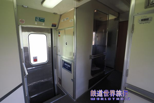 客室両端の通路はスロープになっている。 |