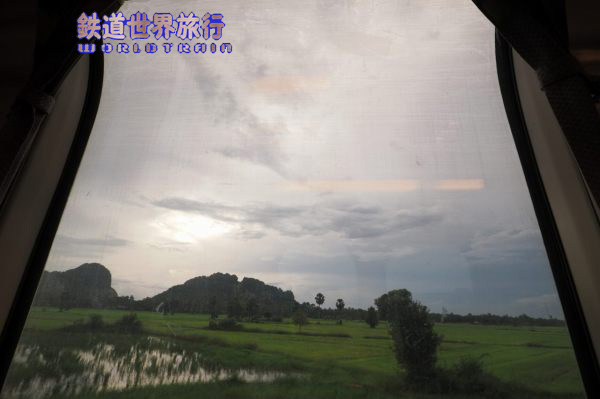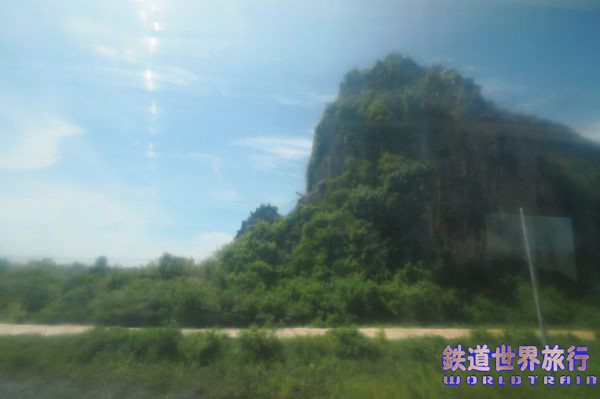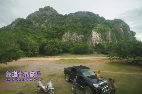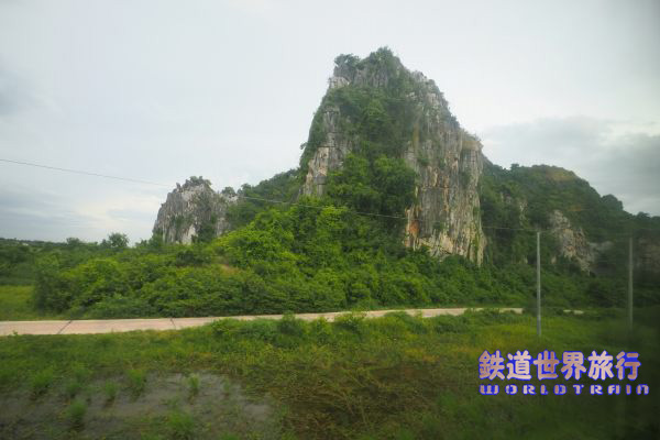 プノンペン駅を出て3時間程経つ頃、岩山が多く目に付く様になり、まるで願望岩という車窓があった。 |