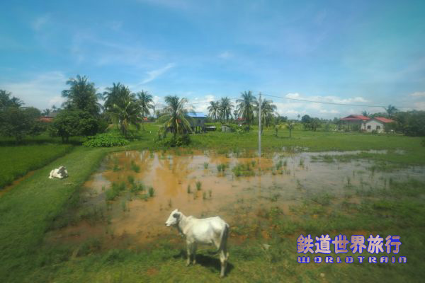 Kepで同じ車両であるが、窓の汚れが少ない席に移った。田畑の眺であるが樹木に南国らしさを感じる。 |