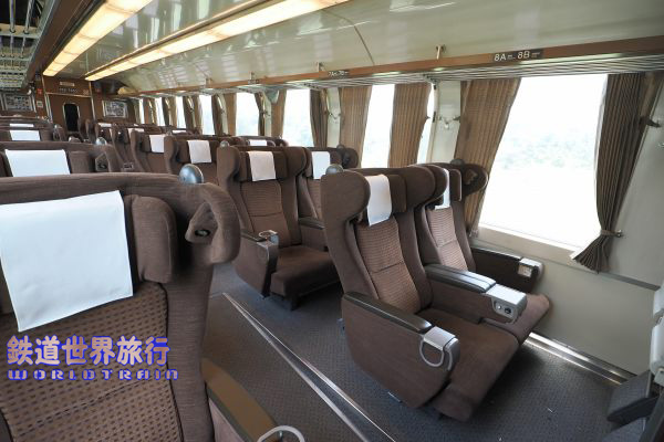 元グリーン車のFirst Class ハイデッカーグリーン車は上の方がカーブした窓が特徴で、登場時期はこちら方が早いがスイスSBBのパノラマ客車と似た構造になっている。 |