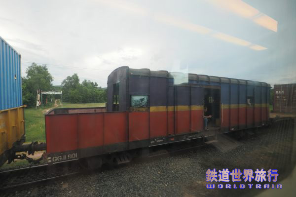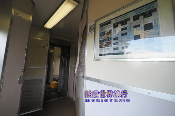 金曜の夜はシアヌークビルとバッタンバンからの両列車ともハイデッカーグリーン車が連結されていたので、この車両も使われているが反対側の貫通路には板で塞がれていた。 |