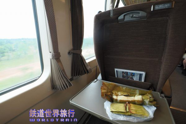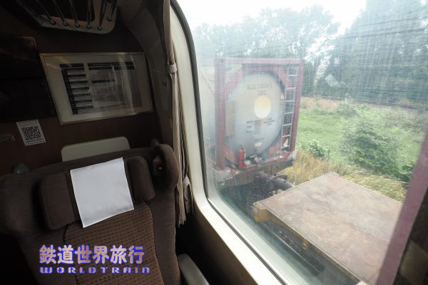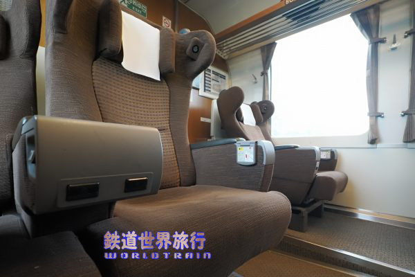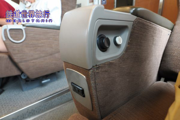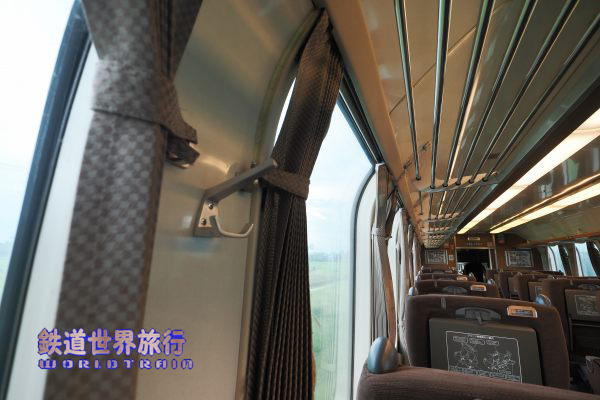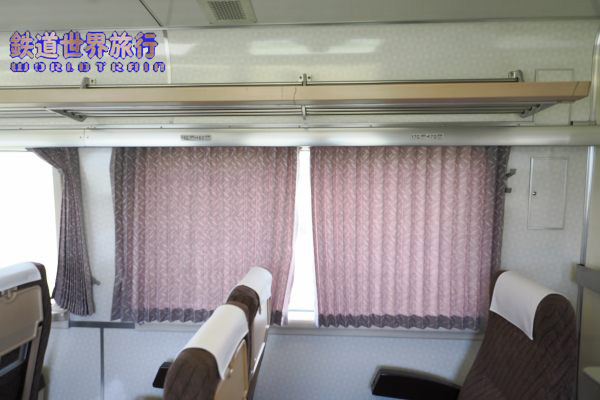 1人掛け側、日本の車両なので当然であるが、座席と窓のピッチは合っていて、何列目に座っても同じ位置関係になる。 |