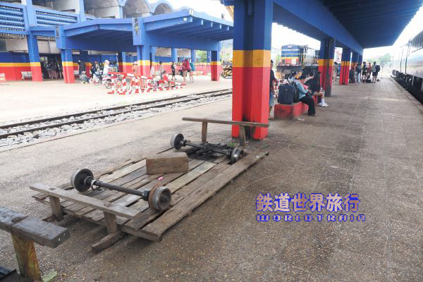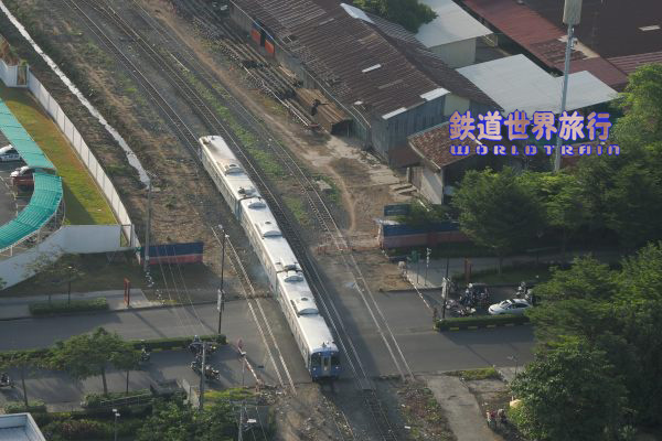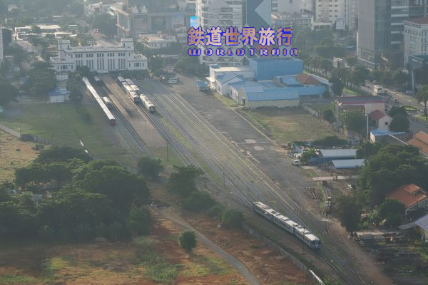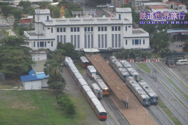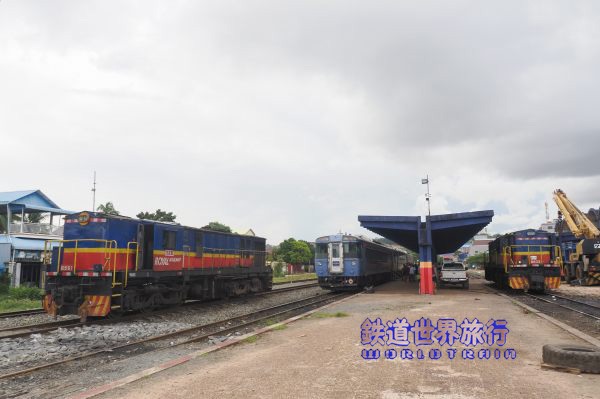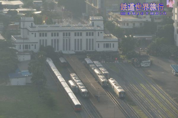 ホーム端の方に進み、メキシコ製DMU、ドイツDUEWAG社製DMUから改造された客車編成を入れた並び。時刻表上はバッタンバン行きが20分早い6:40発で、その出発を撮影してから乗車しようと待っていたが、時刻を過ぎても出発する様子が無かったので諦めた。 |