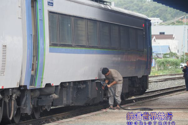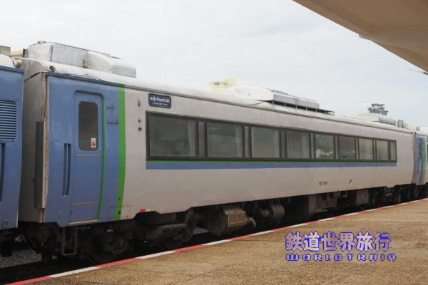 土曜日バッタンバン行きの中間車で、日曜日は留置されていたキハ182-7557、中間車も妻面に車両番号が書かれ、JR時代にあった検査表記は消されていた。 |