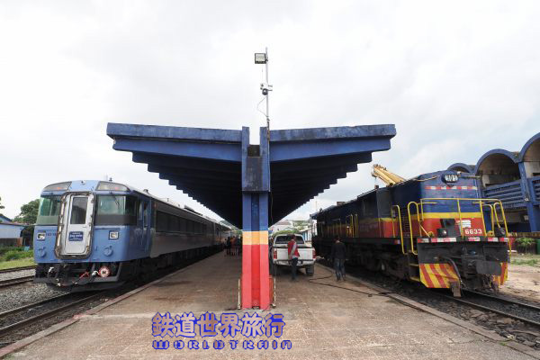 土曜日バッタンバン行きの先頭で、日曜日は留置されていたキハ183-9561、前面の左側窓下に車両番号が書かれ”SOUTHERN LINE、PHNOM PENH-SIHANOUKVILLE”のヘッドマークを付けていた。 |