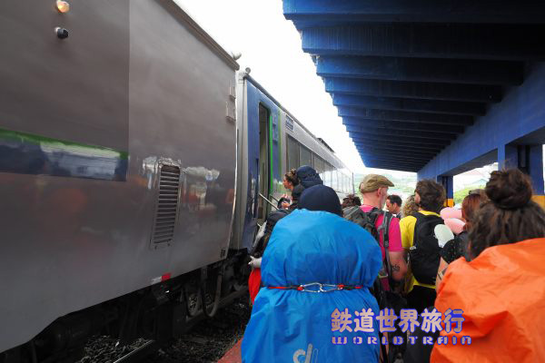 終着時は先頭車で前面展望、どちらが1番線か知らないがホームの南側の線に入り前方にはメキシコ製DMUが停まっていた。若干回復して定刻より13分遅れで到着。 |