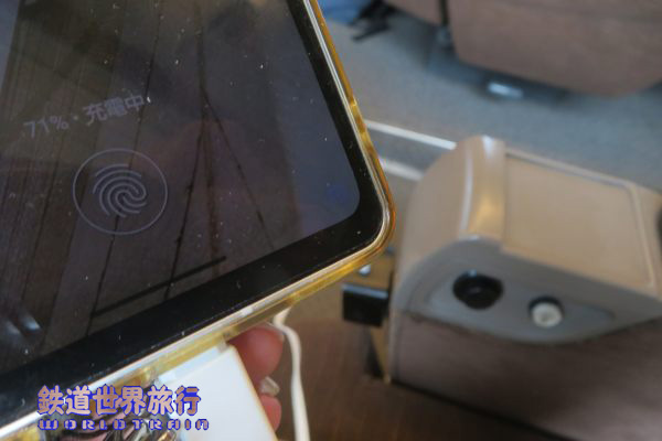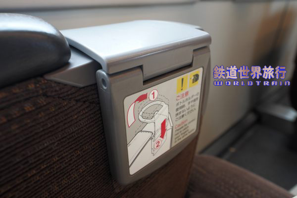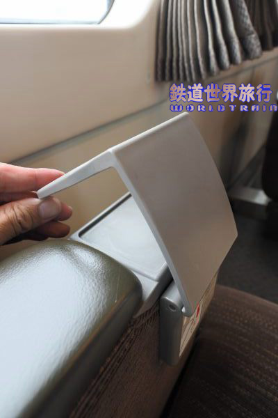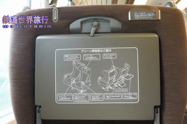 最前列は仕切壁に折り畳みテーブルがあり、とても広く使えるが、足元は他の席より若干狭い様に見える。 |