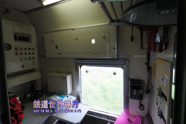 復路の後ろ側は通路との間の扉が開いていて運転台が見えた。 |