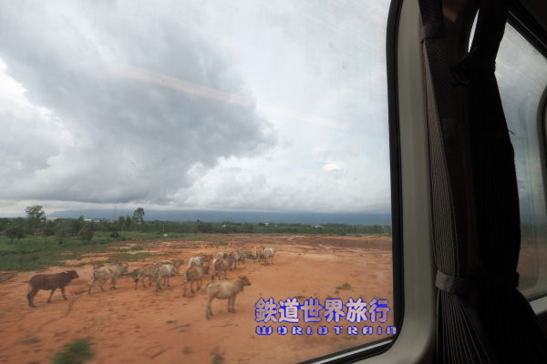 定刻ではバッタンバン行きは6:40発、シアヌークビル行きが7:00発であるが、結局こちらのシアヌークビル行きの方が定刻より3分遅れで先に出発した。 窓の汚さもJR北海道時代そのままで、車窓からの写真が撮り難かった。 |