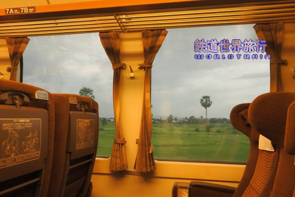 復路のプノンペン行きは左側が1人掛けとなる。 折返しのシアヌークビルでは乗車時までに3両とも全席の座席の向きが変えられていた。 |