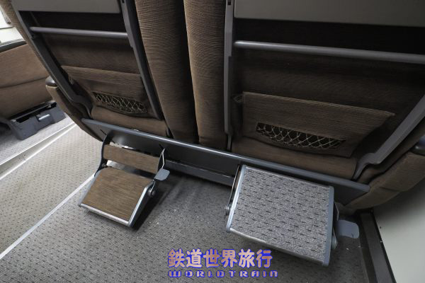 フットレスト、初期状態では床の絨毯、展開すると座席と同じ生地になり、説明書きは無いが他の乗客も靴を脱いで使われていた。 |