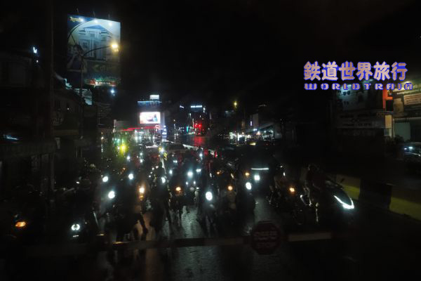 最後の停車駅Takeoでも20分少々の遅れ、外はだいぶ暗くなり雨が降っていた。 |