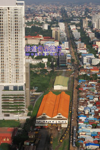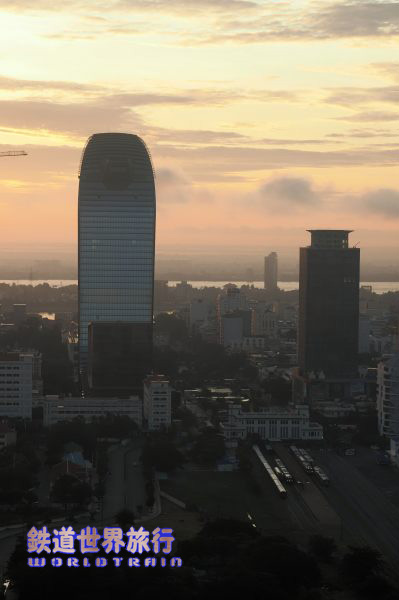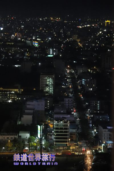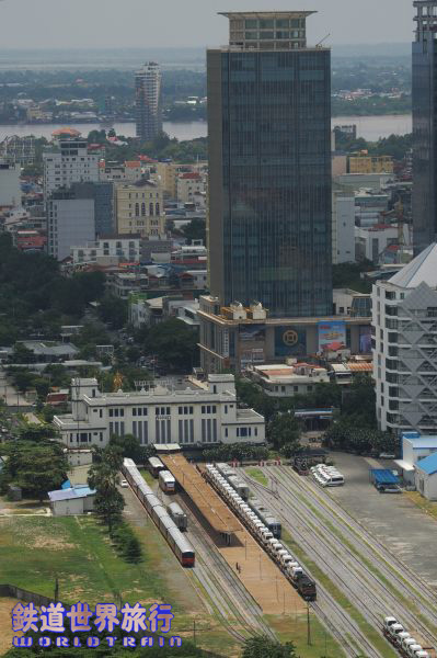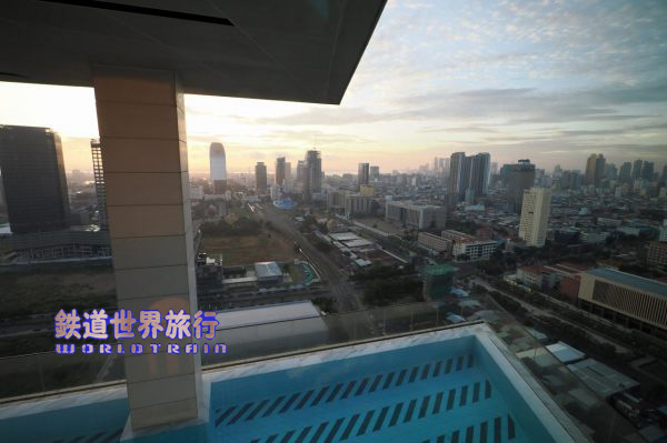 今回、プノンペンでは線路近くに建つ高層ホテルに宿泊、ベランダに出るとプノンペン行きの列車のヘッドライトが遠くから確認できた。 スタンダードルームは線路と反対側という事で、少し追い銭してアップグレード、フロアマップを見ると確かにその通りだった。 |