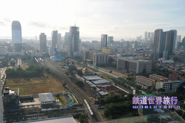 日曜日の2本目、シアヌークビル行きは38階の自室に戻ってベランダから撮影。 |