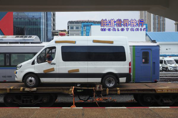貨車の上のワゴン車はキハ183と同等な高さ。 |