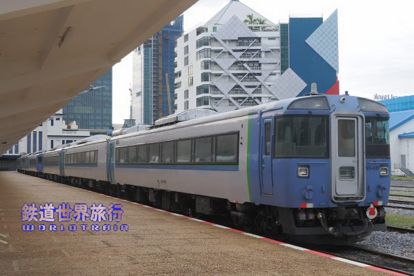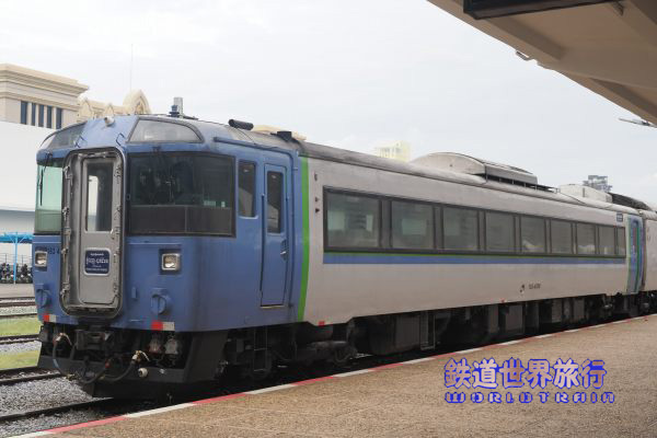特急北斗の回送に入っていたキロ182-7552、札幌にある自宅の窓から見ていた時は、まだスラントノーズの183系初期型が陣屋へ行く前で、この後カンボジアどころか海外で活躍するなんて思いもよらなかった。 |
