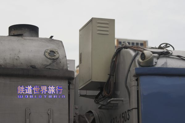 土曜日に乗ったシアヌークビル行きの先頭だったキハ183-1503、発電機付きで定員確保の為元々は便所無しで造られているが、短編成の特急サロベツで使われる様になる際に改造され、デッキと客室の間に便所、洗面所がある。 前面の右側窓下に番号が書かれ、”NORTHERN LINE、PHNOM PENH-BATTAMBANG”と書かれたヘッドマークを付けていた。 |