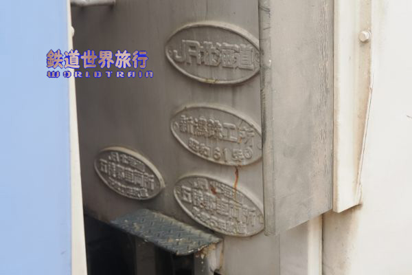 こちらの写真はキロ182-7553であるが、銘版は残され”新潟鐵工所昭和61年”という製造銘版がある。 |
