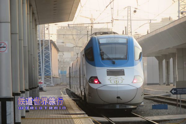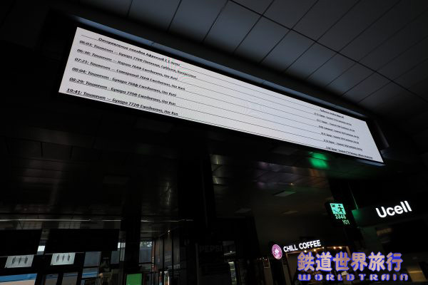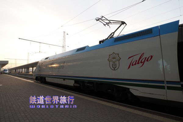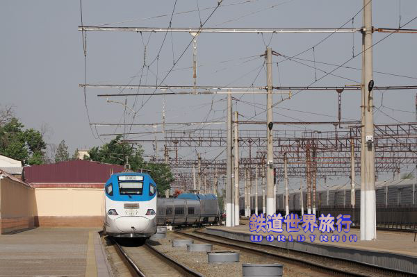 | 駅舎前に停まっていたAfrosiyob編成は6:10頃に出発していった。 出発案内に土曜日曜6:03ブハラ行きという表示があり土日ではないが増発運転されていたのかも知れない。 |