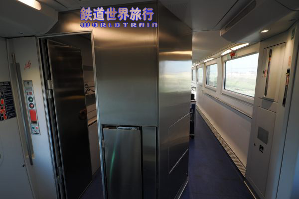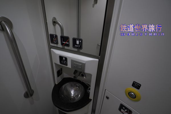 | 化粧室はデッキ側に入口があり、デッキが無い両端のVIP車両や食堂車を除き各車1ヶ所づつある。 |